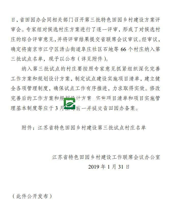 江苏省特色田园乡村建设第三批试点村庄名单公